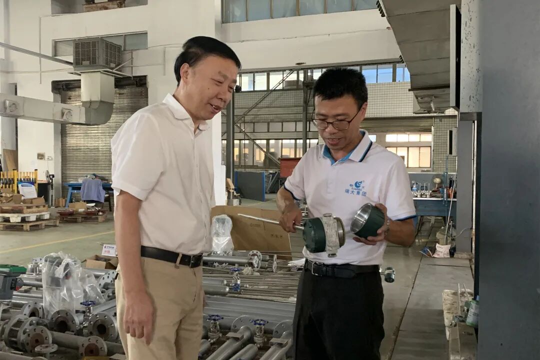 叶建辉一行实地参观了余忠传所在的瑞大集团生产车间、产品展示厅,详细询问企业生产经营情况。据了解,瑞大集团有限公司是一家集研发、生产、销售于一体的实力型无区域集团公司,也是国家高新技术企业和浙江省科技创新型企业,专注于生产流程工业自动化测量与控制技术,公司产品广泛应用于油气、炼油、石化等行业。